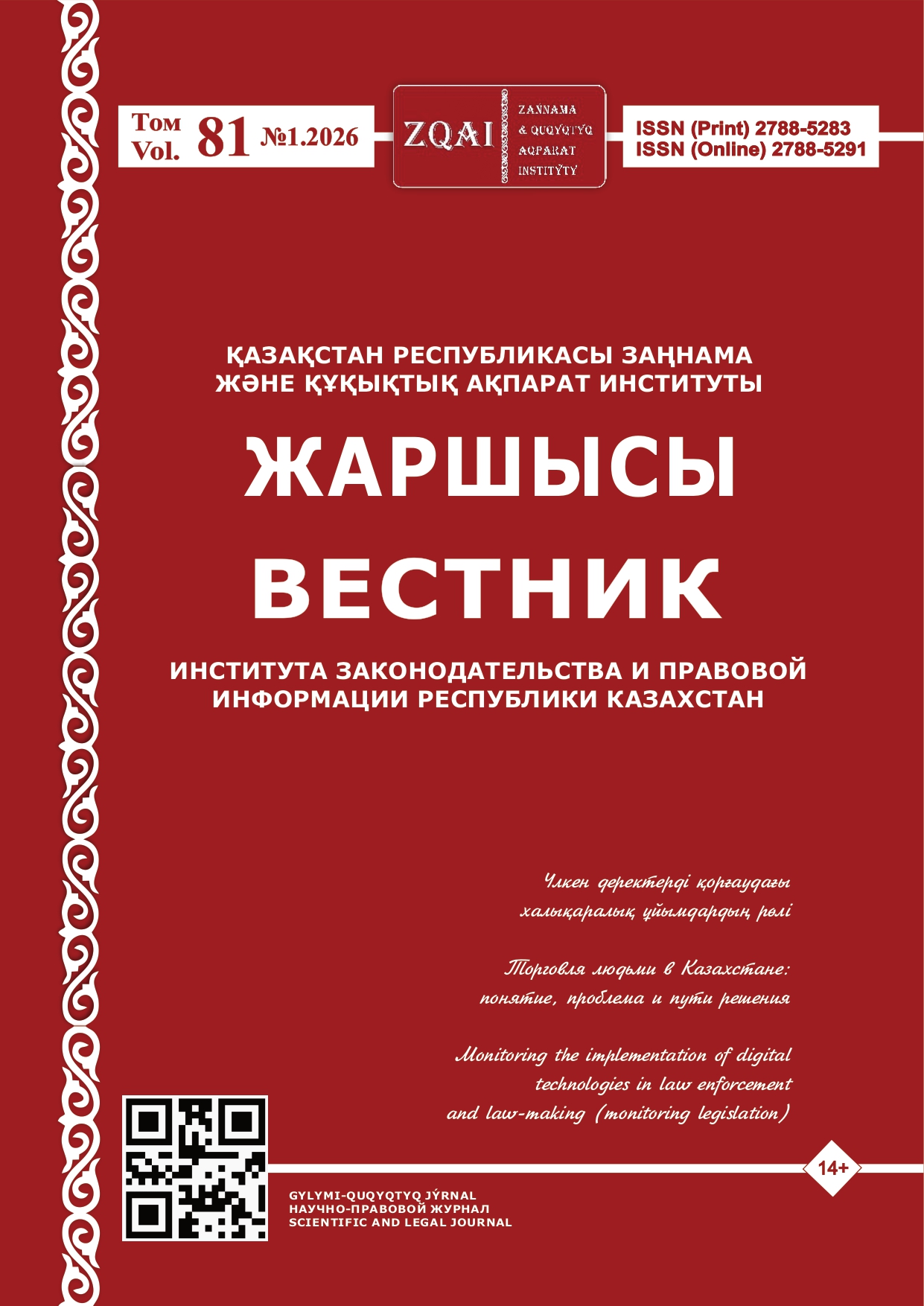 Том 80 № 2 (2025)Вестник Института законодательства и правовой информации Республики Казахстан